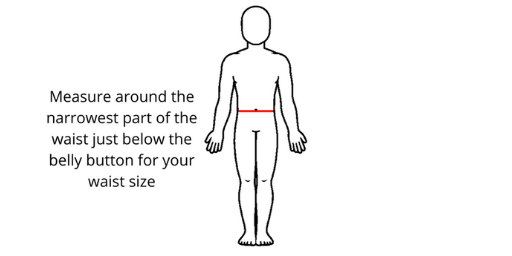 - Use a tape measure around the narrowest part of the waist just below the belly button.